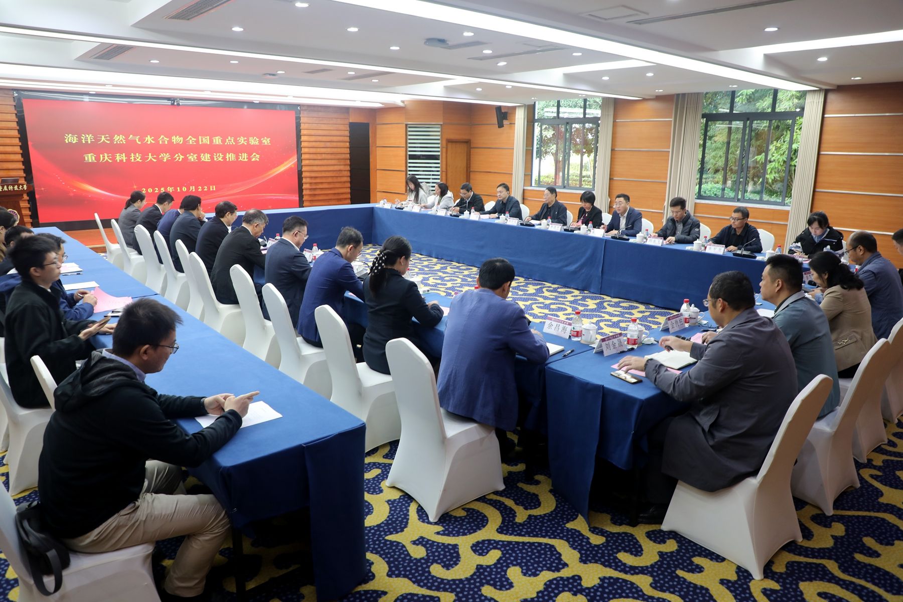 10月22日上午,海洋天然气水合物全国重点实验室重庆科技大学分室建设推进会在行政楼105会议室举行。中国工程院能源与矿业工程学部主任、我校非常规油气开发国家重点实验室(筹)学术委员会主任周守为院士出席会议,怀柔实验室正高级工程师、中海油集团公司专家李清平,中海油研究总院水合物和海洋资源战略研究中心副主任付强、水合物钻采首席工程师何玉发、深水结构和地质风险评价室主任刘永飞、开发资深工程师焦红梅、机械工程师朱军龙、工程师王怡萱和冯馨应邀出席研讨会。学校校长赵明阶,副校长吴松、朱永利、戚志林,党政办公室、宣传部、科技处、计划财务处、基建处、资产与后勤管理处、信息化中心、石油与天然气工程学院、土木与水利工程学院、重庆非常规油气开发研究院相关负责人和教授博士代表参加了会议。